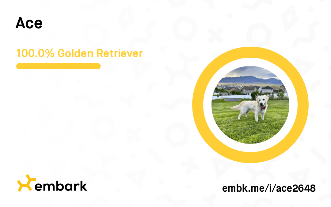 Personality: Ace is our handsome, 43-pound purebred AKC Golden Retriever with exceptional qualities. His rare, smaller size makes him an ideal and valuable foundation for our specialized breeding program focused on developing petite Golden Retrievers. Despite his compact stature, Ace fully embodies all the beauty, charm, and gentle temperament of a full-sized Golden Retriever—traits that have long captured the hearts of dog lovers and enthusiasts alike. With perfect looks, a shiny coat, and an outstanding, friendly personality, Ace is not only a joy to be around but also exceptionally easy to train and work with. He consistently sires fabulous puppies that beautifully reflect the best qualities of the breed, offering a more manageable and ideal companion size for family life. We are so excited for one of his beautiful puppies to join your family