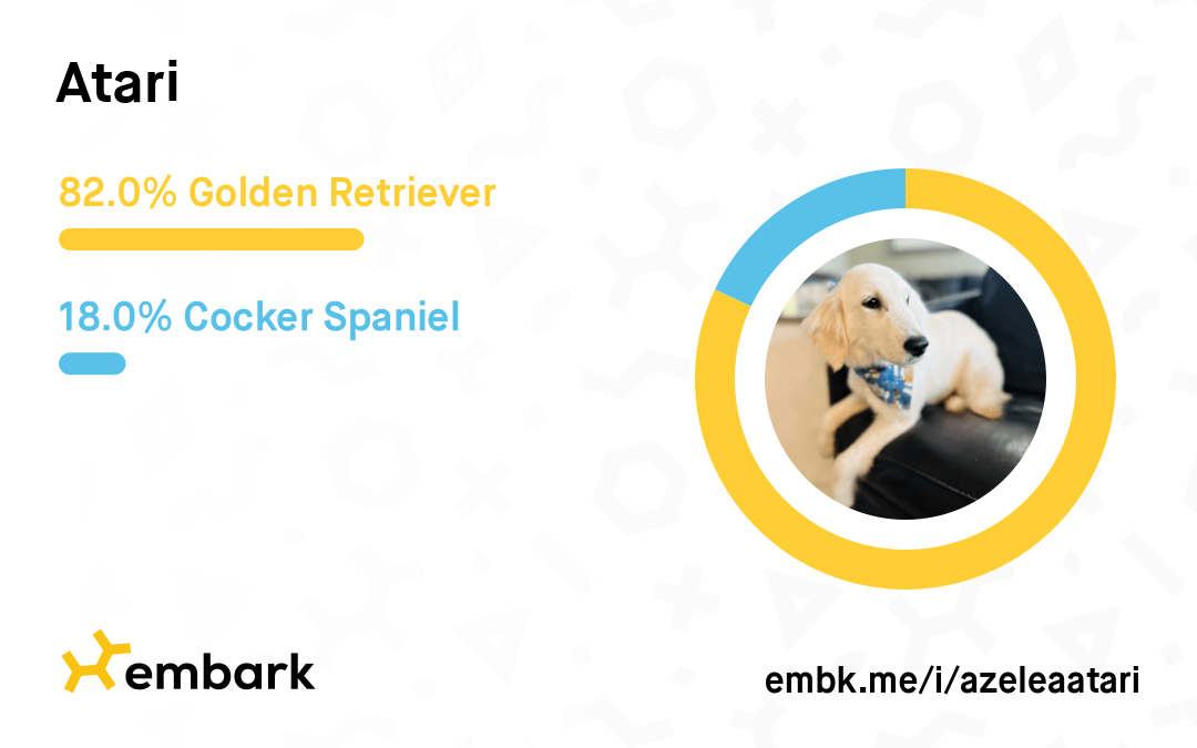 Breed: Atari is the perfect mix of Golden Retriever and Cocker Spaniel, she does have poodle back 3 generations in her lines, but the poodle has been bred out.