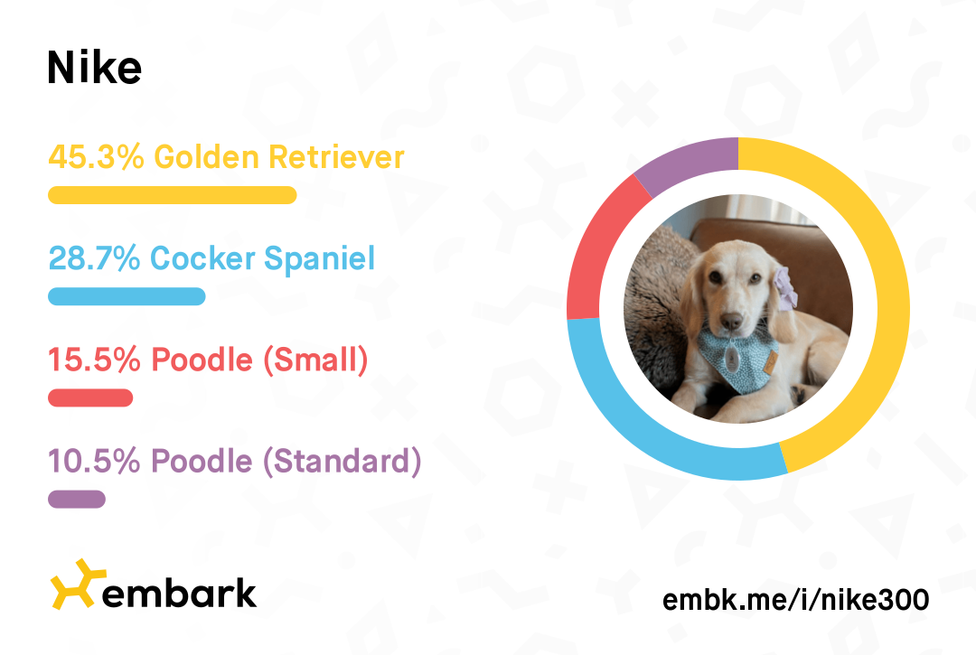 Shedding: Low seasonal shedding Golden Retriever coat. Embark TT double copy lwo shedding