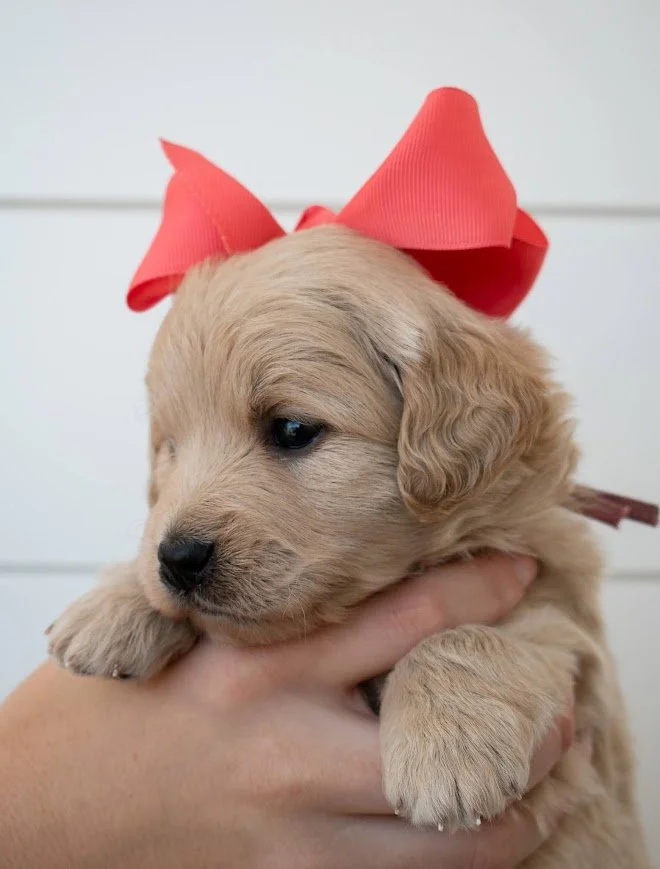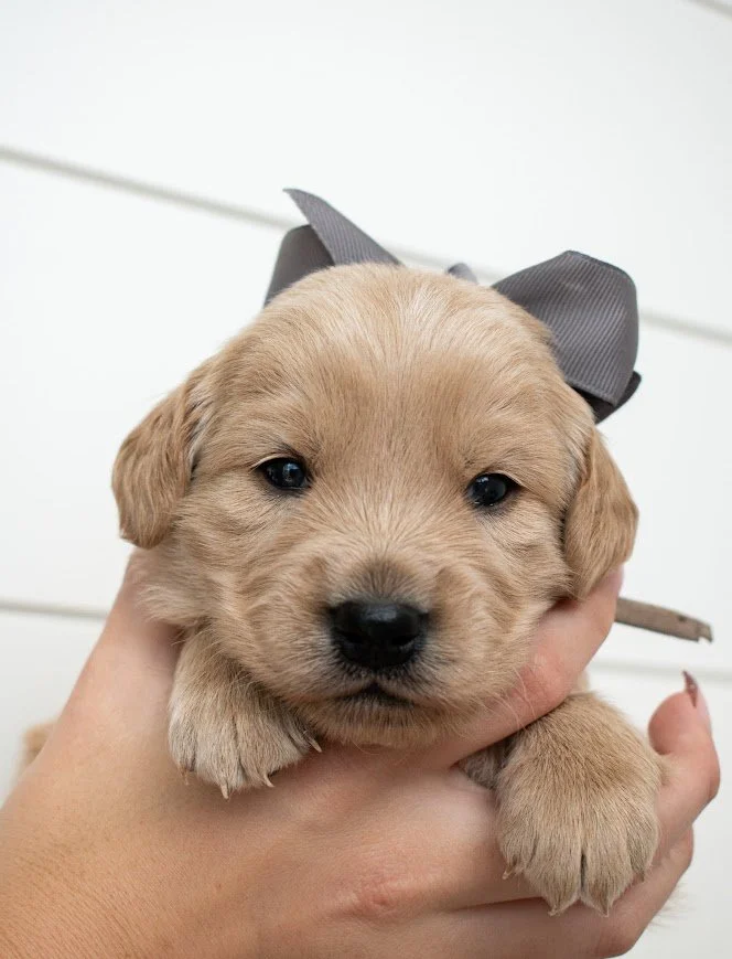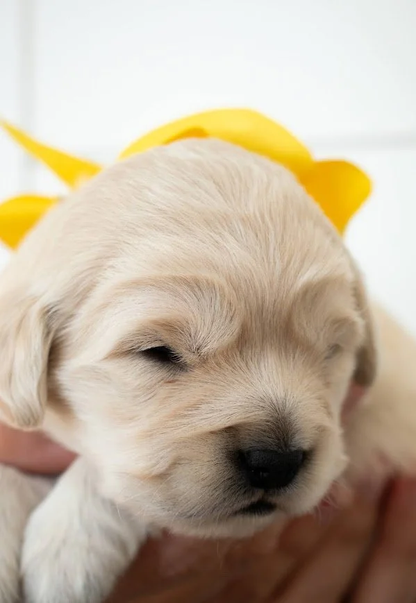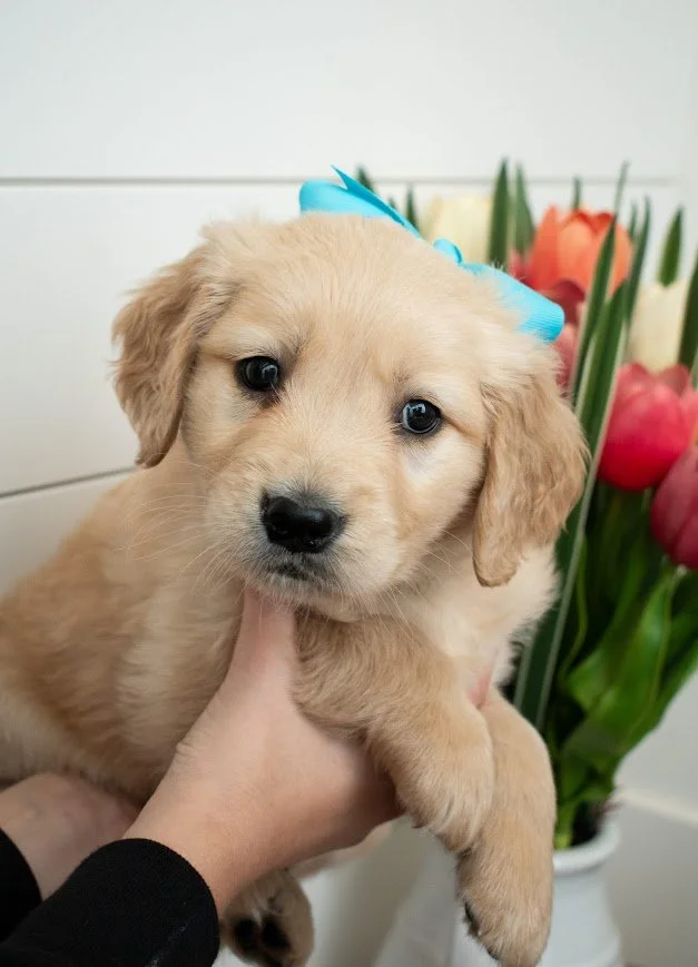 Personality Notes: Happy – Mini Golden Retriever Happy is a truly special little boy with a naturally affectionate and people-focused personality. He loves to be held and cuddled, often seeking out connection and settling in comfortably with his person.