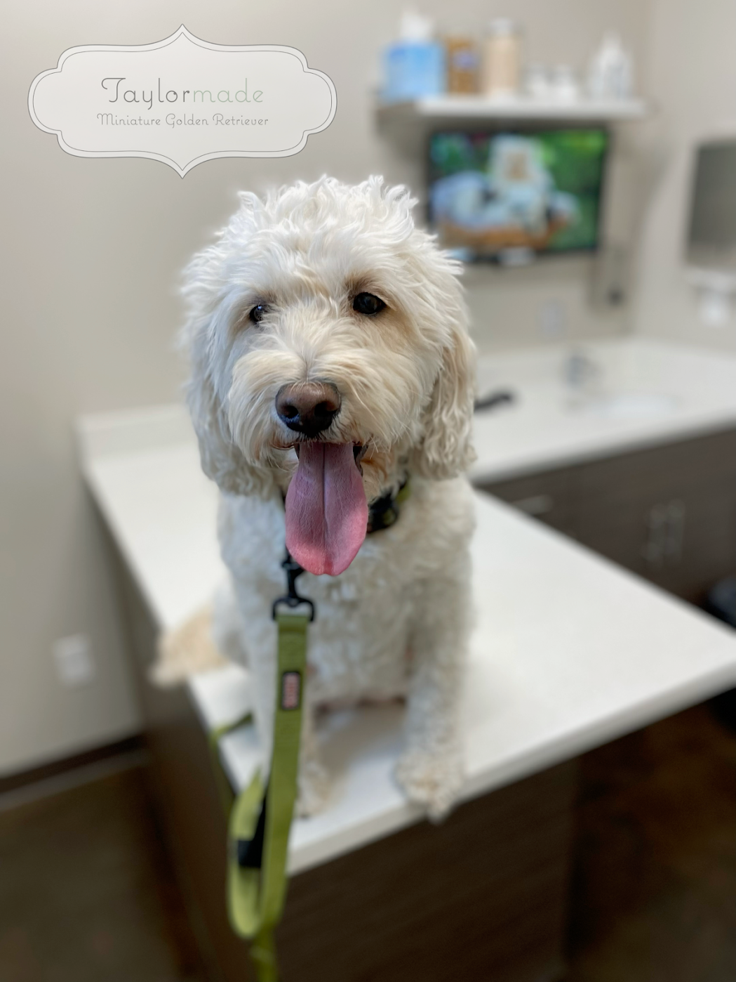 Taylormade Mini Golden on the Grooming table ( Rosie 35 lbs)