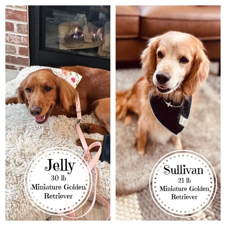 Meet Jelly and Sullivan with their beautiful litter of Miniature Golden Retrievers! They are from Taylormade Mini Golden's. These puppies are our low shedding lines since both parents have two copies of the Embark TT low shed coat! We named them after our favorited things in Summer since they were born on the first day of Summer.